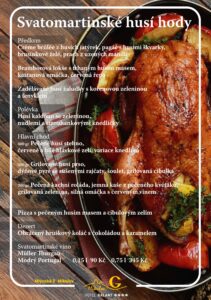 Můžete se těšit například na Svatomartinskou husu s červeným zelím a knedlíkem, staré české recepty z husích drobů či Svatomartinské víno.